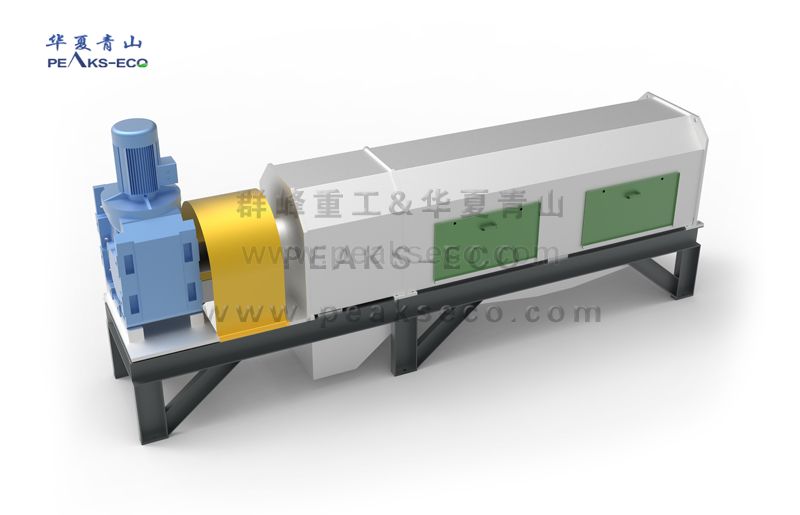物料进入挤压机后,在锥度螺旋轴和变径螺旋作用下,使物液产生体积上压缩,将水分从物料中挤出,再通过孔状滤筒迅速分离排出,剩余固体在螺旋的输送作用下排出机外,从而实现固液分离。